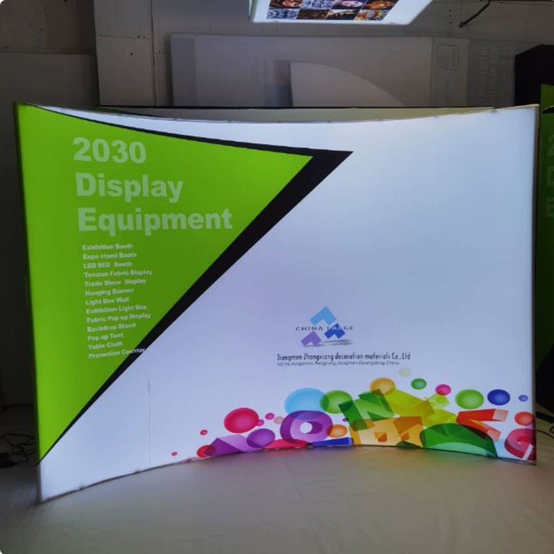 - SEG backlit LED curved pop up display with lightweight portable design which easy for you to carry them to attend your trade show.