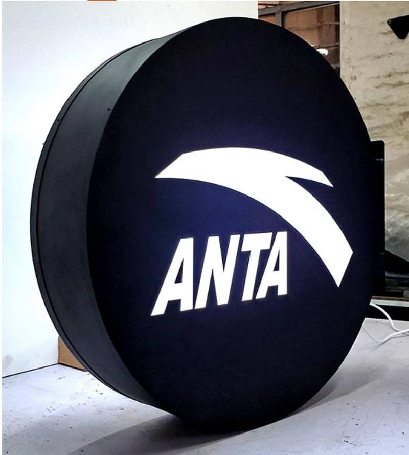 Fret-cut inlay light box sign using laser cutting or CNC router technology, the logo or pattern shape is carved out on the surface of acrylic or metal panels, and an acrylic transparent plate is embedded on the back of the panel to allow light from the back to penetrate the transparent panel, highlighting the brand logo or advertising pattern you want to display.